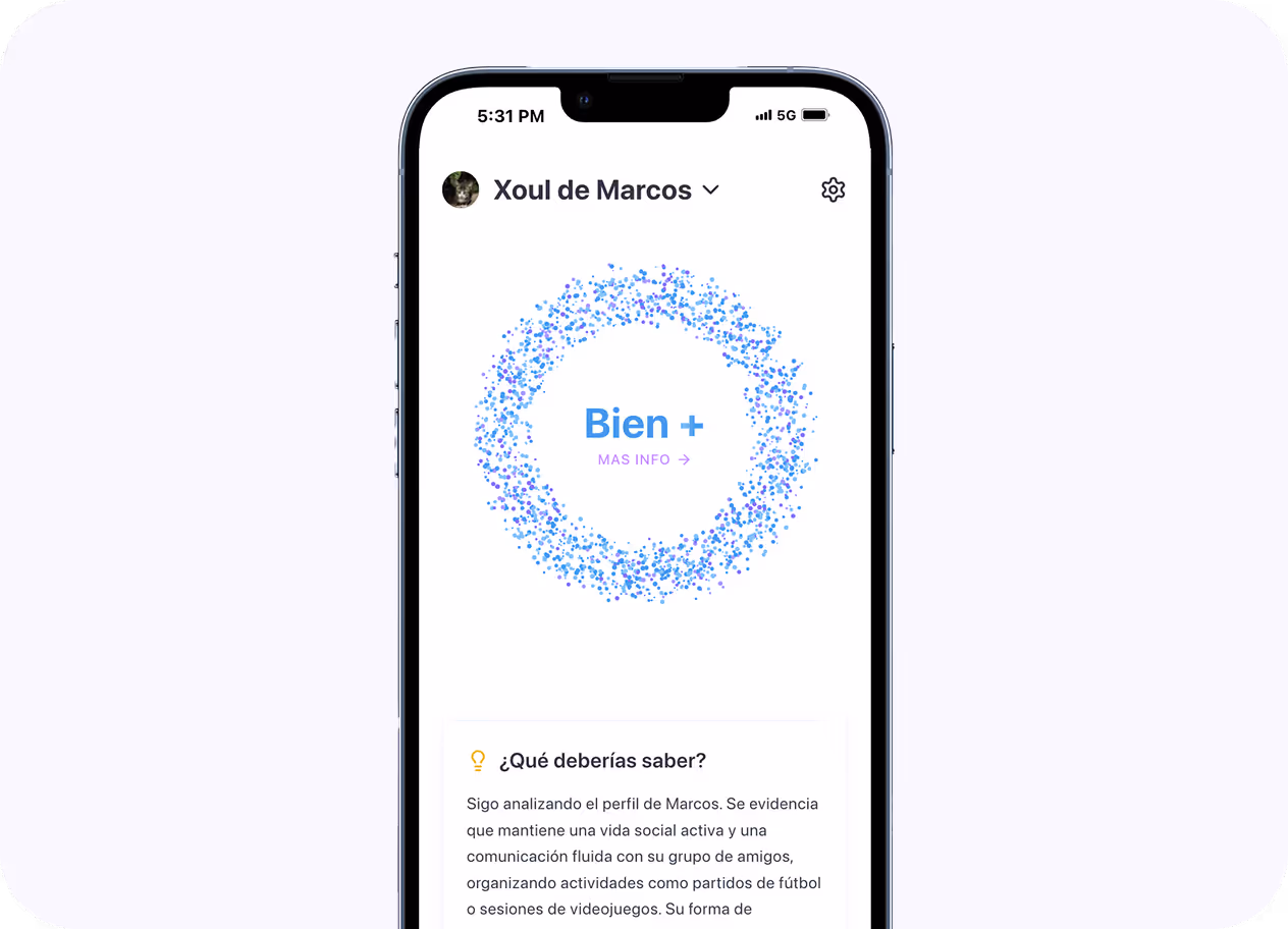 En pocos minutos recibirás tu primer reporte personalizado. XOUL te muestra lo importante de su vida digital: cambios emocionales, señales de riesgo y momentos positivos, sin exponer contenido privado.